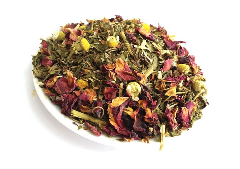 Peppermint, rose, passionflower, camomile, lemon balm, valerian root