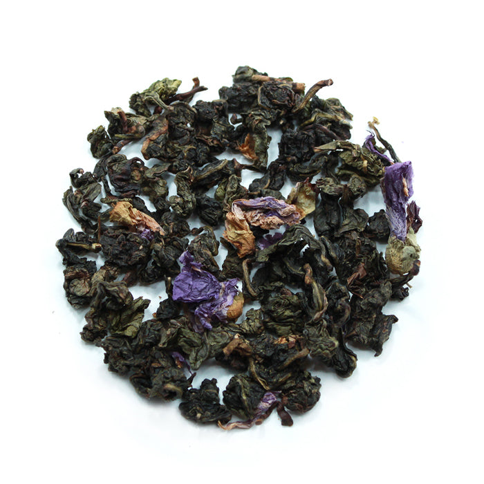 Ti Kuan Yin Oolong (China), blue sweet pea flowers