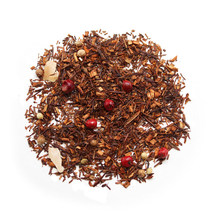 Rooibos, orange peel, red peppercorn, coriander, almond slices, natural flavour