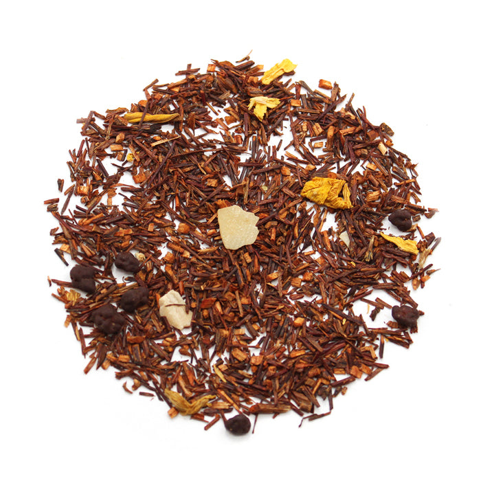 Rooibos, almonds, chocolate pieces, cocoa powder, lecithin, sunflower blossoms.