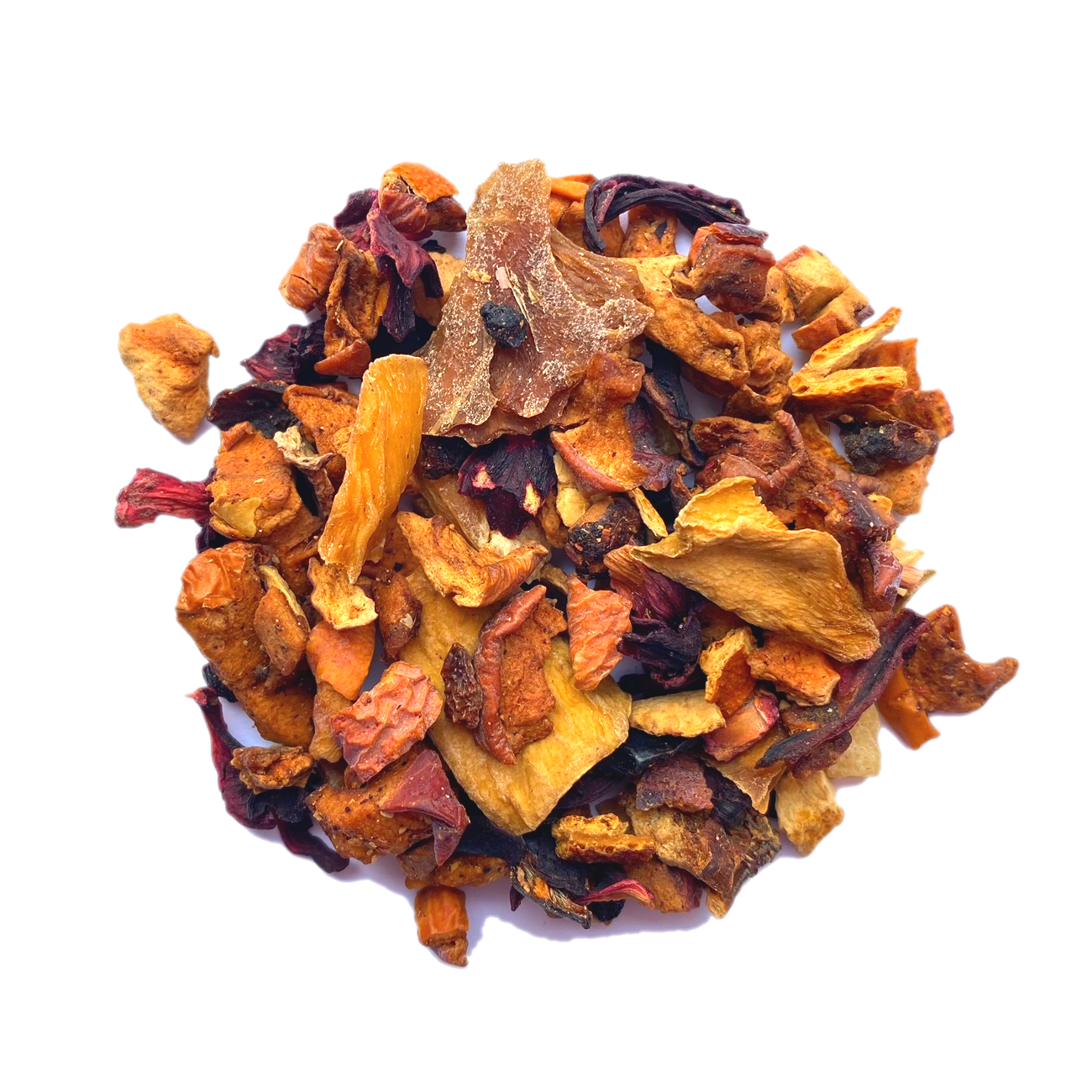 Apple, mango, orange, elderberry, rosehip, pineapple, hibiscus, natural flavours